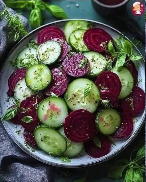 El pepino y la remolacha han sido alimentos básicos en muchas culturas alrededor del mundo. El pepino se cultiva desde hace miles de años, originario de la región del sur de Asia, y ha sido apreciado por su frescura y su capacidad para hidratar. Por otro lado, la remolacha, con su color rojo intenso y sabor dulce-terroso, ha sido cultivada en Europa y Medio Oriente desde la antigüedad y se usaba tanto en la cocina como con fines medicinales. La combinación de ambos ingredientes en una ensalada es relativamente moderna, pero ha ganado popularidad por su sabor fresco y su atractivo visual. Las ensaladas que combinan verduras crujientes y cocidas, como en este caso, permiten aprovechar texturas variadas y crear un plato equilibrado y refrescante.