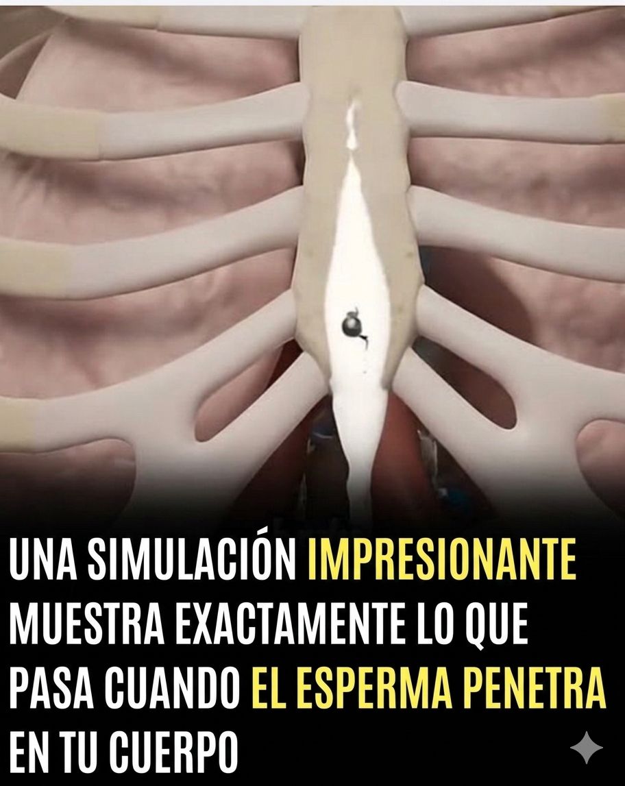 Con la ayuda de un modelo anatómico sin piel, la simulación muestra un líquido blanco que representa el esperma, el cual es ingerido antes de seguir su camino por la garganta y el sistema digestivo. Pequeñas formas que representan los espermatozoides se desplazan con el líquido, mientras el clip guía a los espectadores a través del proceso biológico paso a paso.
