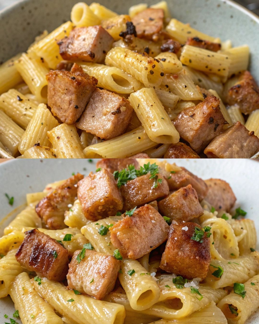 La receta del lomo al ajillo la tenéis en los ingredientes, hagáis o no esta pasta, os recomiendo que le echéis un vistazo. Perfecto para la cena sobre una rebanada de pan tostado con alioli por ejemplo.