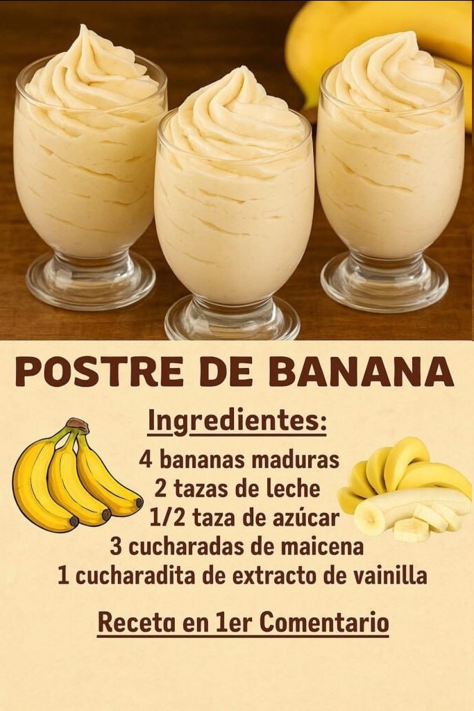 ¡Siiii ! Prepárate para hacer uno de los postres más fáciles, cremosos y sabrositos del planeta: el delicioso POSTRE CREMOSO DE BANANA . ¡Ideal para consentirte sin complicarte! Esta es la receta perfecta para cuando las bananas ya te andan gritando desde el frutero: “¡úsame antes de que me pongan en batido!”