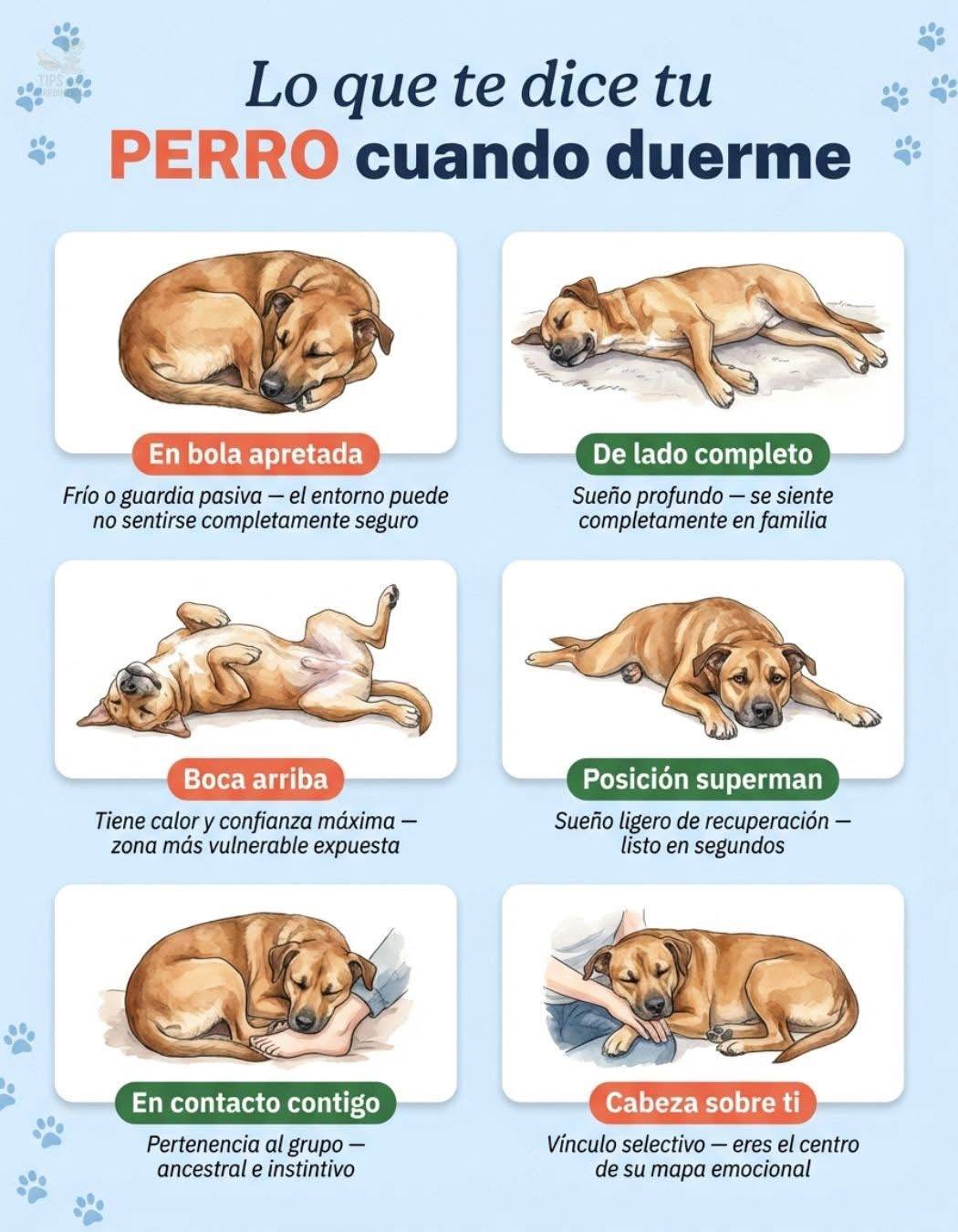 La postura de descanso de un perro es el estado más honesto que puede mostrar — sin estrés de la interacción social, sin necesidad de regular su comportamiento. Lo que ves mientras duerme es lo que realmente siente en ese espacio.